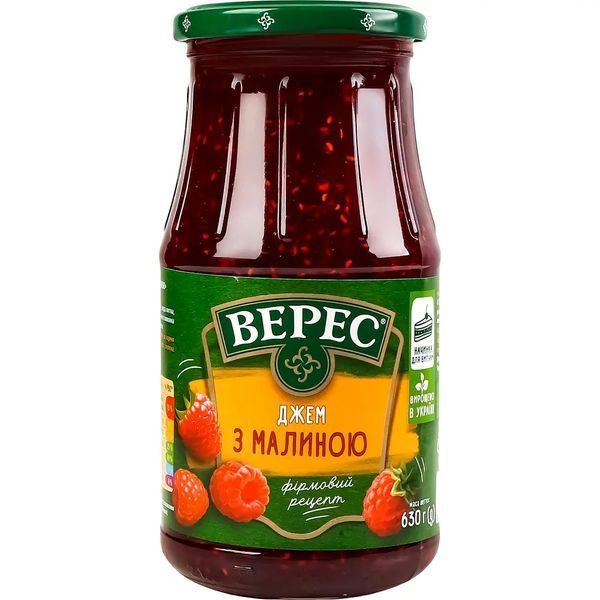 Джем Верес с малиной 630 г — это идеальное дополнение к вашему завтраку или десертам. Изготовленный из натуральной малины и яблочного пюре, джем Верес станет незаменимым продуктом на вашей кухне! Малина наполнена витаминами и антиоксидантами -— это делает джем Верес не только вкусным, но и полезным для здоровья.