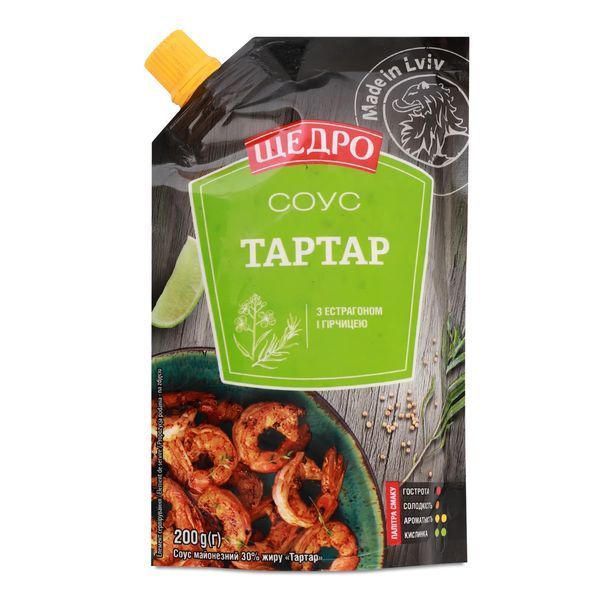Соус Щедро Тартар виготовлений без додавання штучних барвників і консервантів, що робить його безпечним і корисним вибором для всієї родини. Зручна упаковка об'ємом 200 г дозволяє зберігати соус тривалий час після відкриття, зберігаючи його свіжість та оригінальний смак.